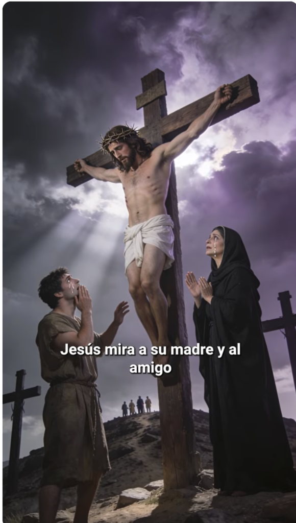 Junto a la cruz, el discípulo amado es testigo de un testamento de amor. Jesús mira a su madre y al amigo y redefine la familia: “Mujer, ahí tienes a tu hijo… ahí tienes a tu madre”. No es solo un gesto de consuelo; es la creación de una comunidad unida por el cuidado mutuo y el amor extremo.